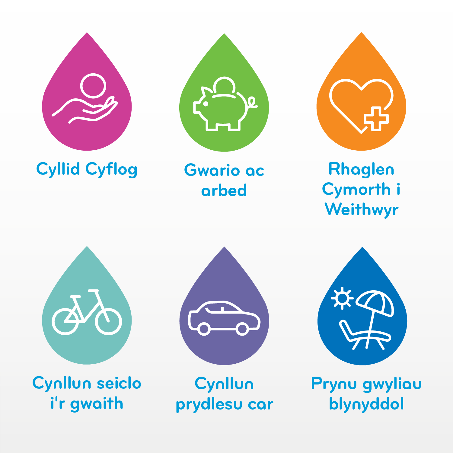 - Cynllun beicio i'r gwaith, cynllun prydlesu ceir a chynllun arian yn ôl am iechyd